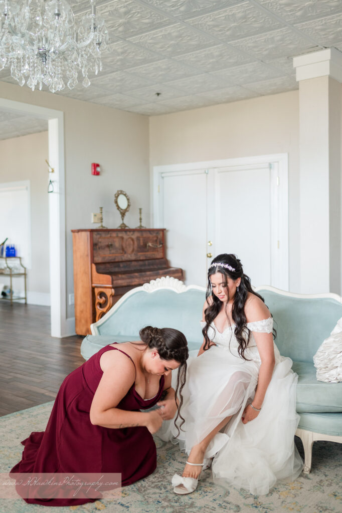 Once we arrived at The White Room, Aliana stepped into her gown inside the bright, spacious bridal suite. Every corner of the venue felt rich with history—the kind of place where even the floorboards seem to hold a story. The White Room team thought of every detail, from glass bottles of water and chilled champagne to an assistant ready to help with anything the girls needed.