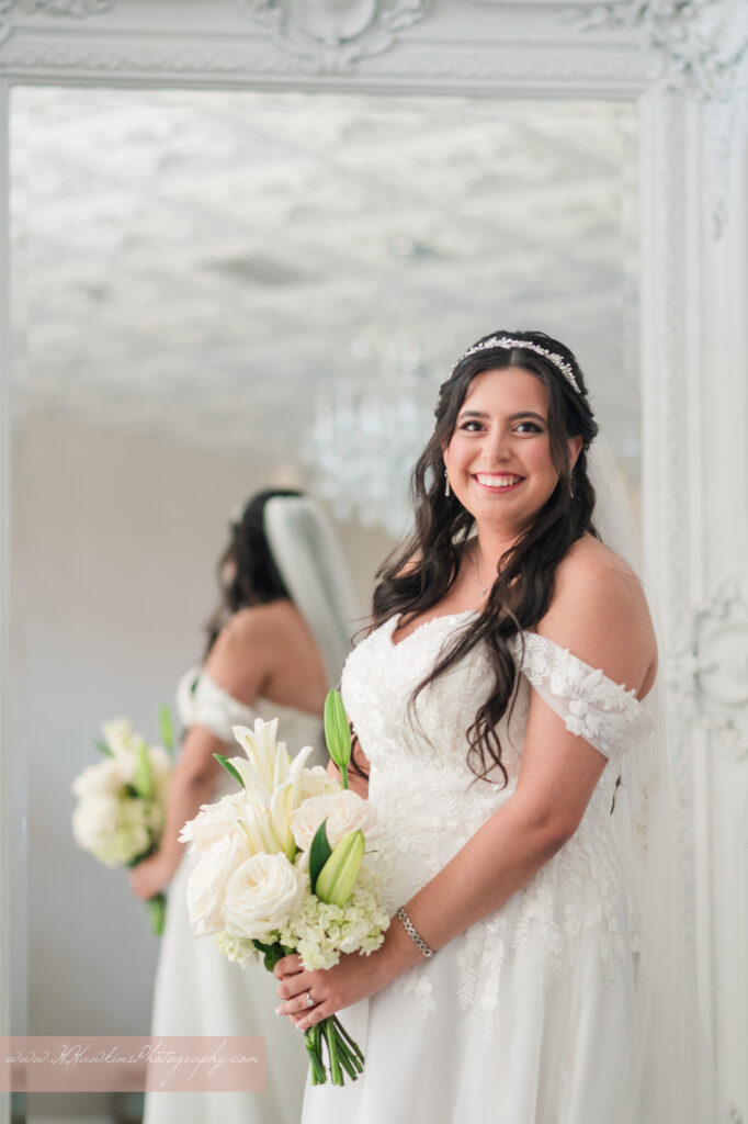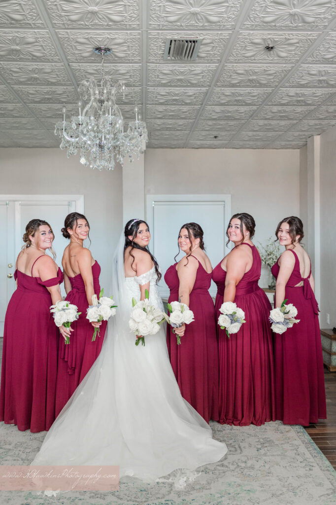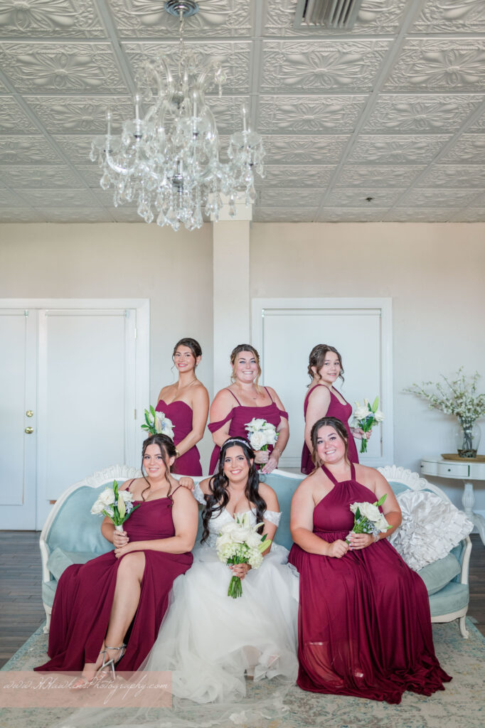 With the chandelier, the light streaming in, and her bridesmaids surrounding her, the space became a radiant setting for portraits just moments before the ceremony.
