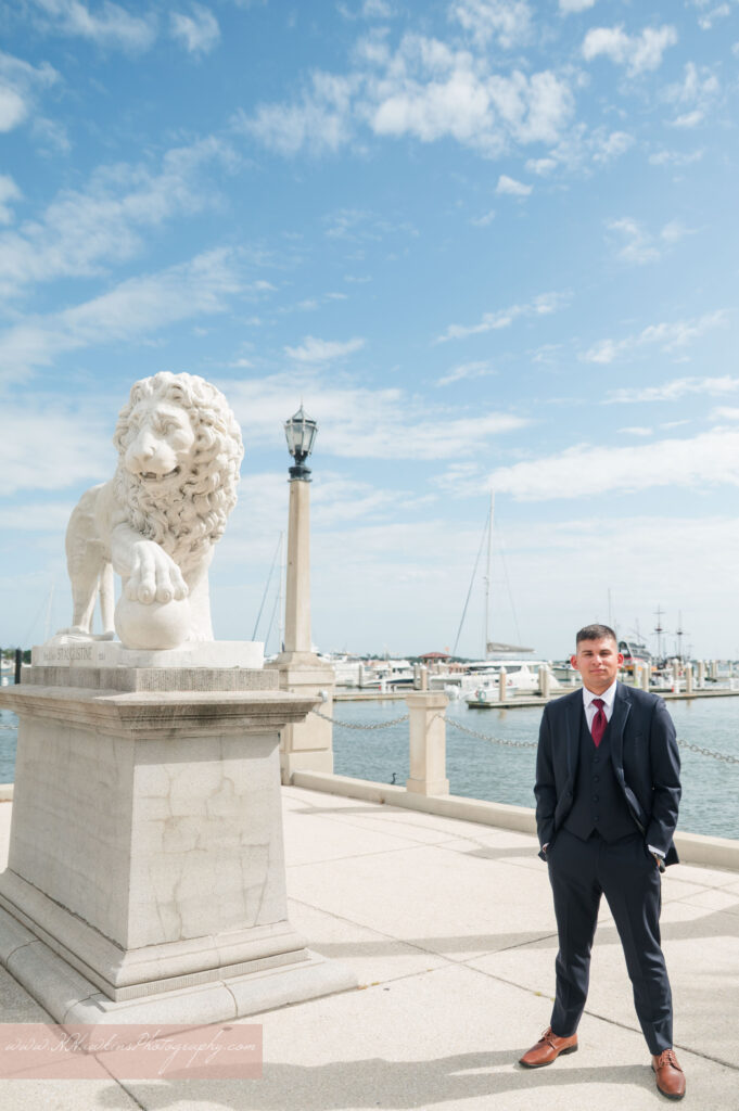 When I first met with Aaron and Aliana, he kept mentioning the Bridge of Lions, and I love that Andrew was able to capture him right there in front of it—lion statue and all!
