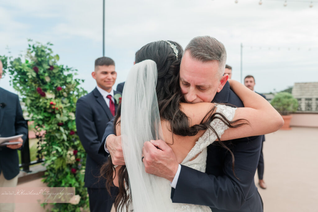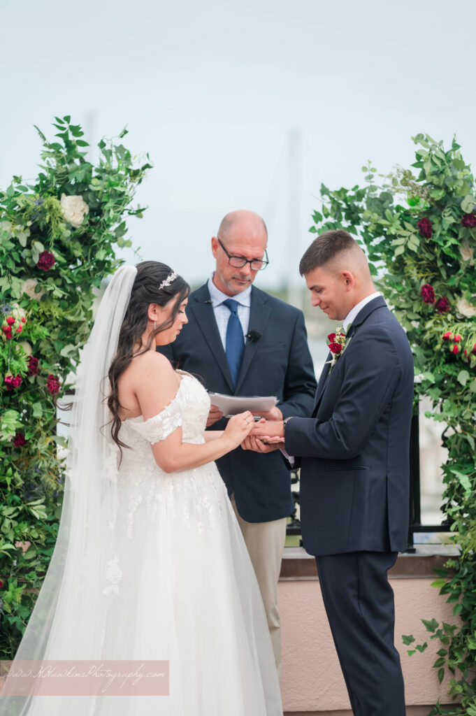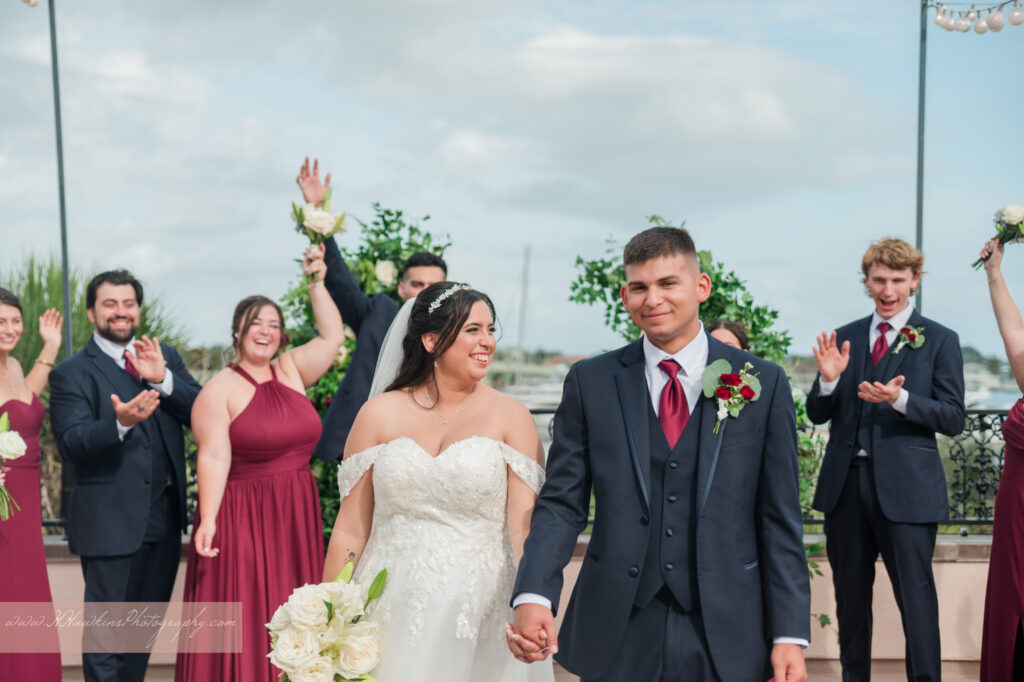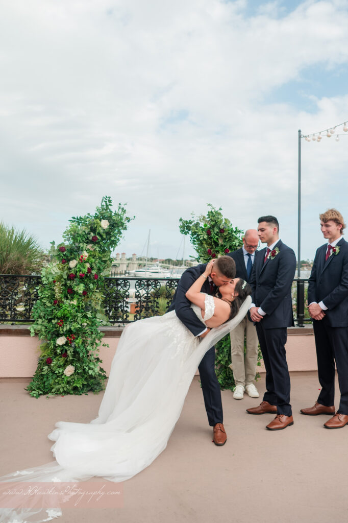 The White Room St. Augustine wedding venue has three historic floors, with their ceremony held on the rooftop terrace overlooking the harbor.