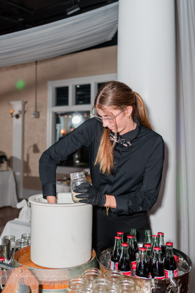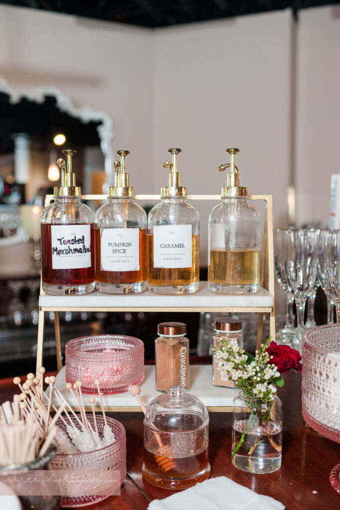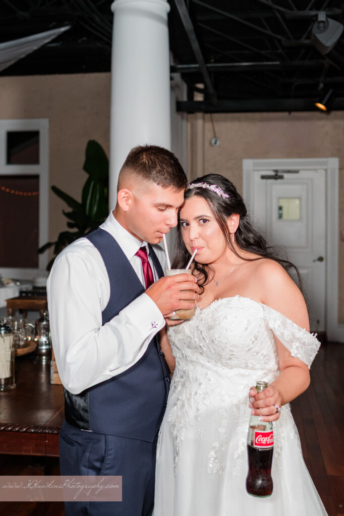 Their reception stations were amazing—lemonades, hot cocoa, a coffee bar with flavored syrups, and even a Coke Float station! It was such a fun and thoughtful touch for their guests.