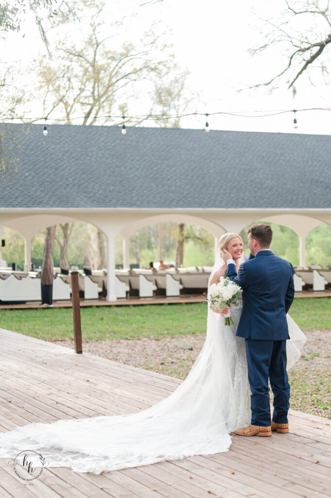 One of the things couples love most about a Whitewood Ranch wedding is the variety of beautiful portrait locations throughout the property. We began on the back deck of The Grand Verre, surrounded by the peaceful wooded area and the natural beauty that makes this venue so special.