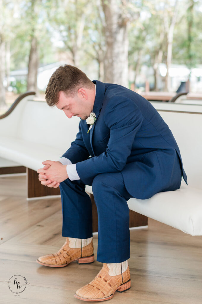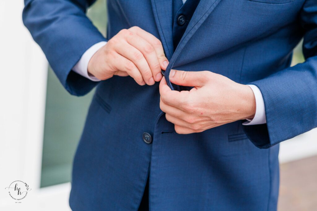 Josh and his groomsmen were getting ready nearby at Whitewood Ranch. The atmosphere on his side of the morning felt calm and steady — a quiet anticipation for the moment he had been looking forward to for so long. As he buttoned his navy suit jacket and prepared for the day ahead, you could see both excitement and deep intention in the way he carried himself.