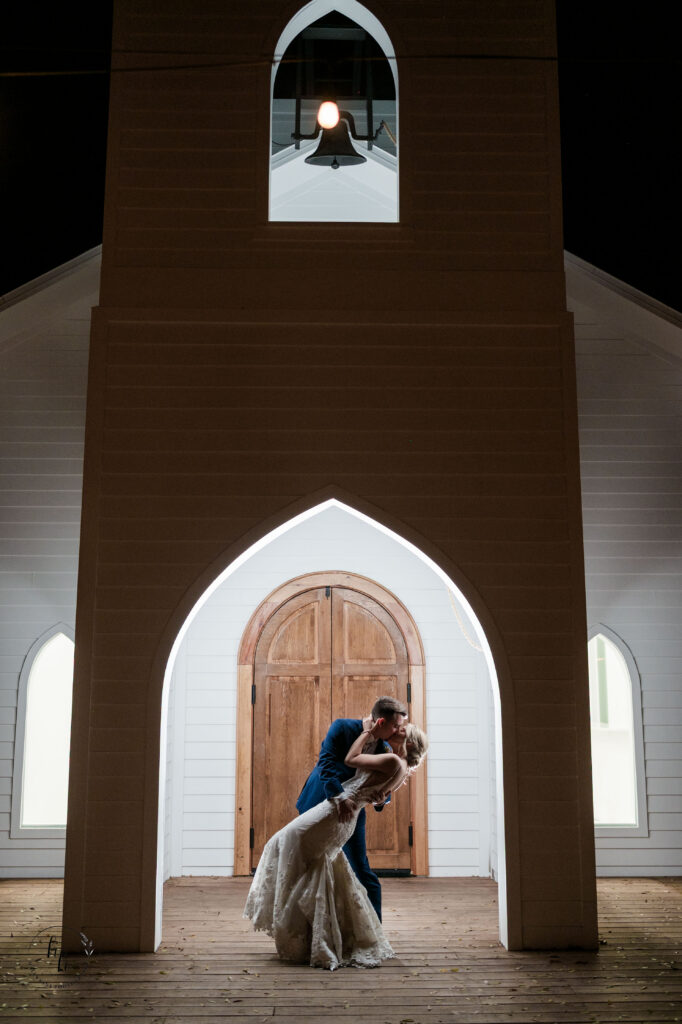 Before they ran through the glowing tunnel of sparklers, we snuck away for a few final nighttime portraits in front of the chapel. The soft glow of the lights around the chapel created such a romantic backdrop and was the perfect way to end the evening.